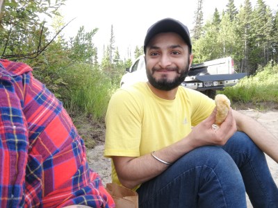 Enjoying his birthday samosas